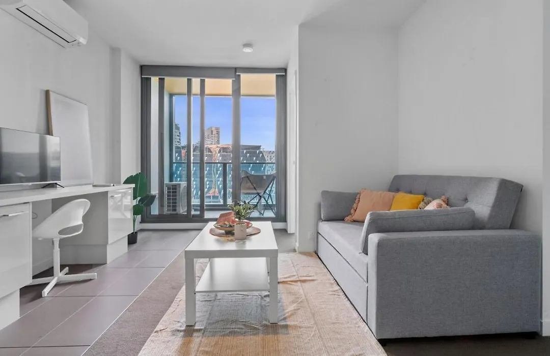 L'appartamento Fantastic City Views 1Min Southerncross Station Skybus Free Tram offre agli ospiti un balcone, un soggiorno e una cucina, oltre a comfort moderni come un impianto di climatizzazione.